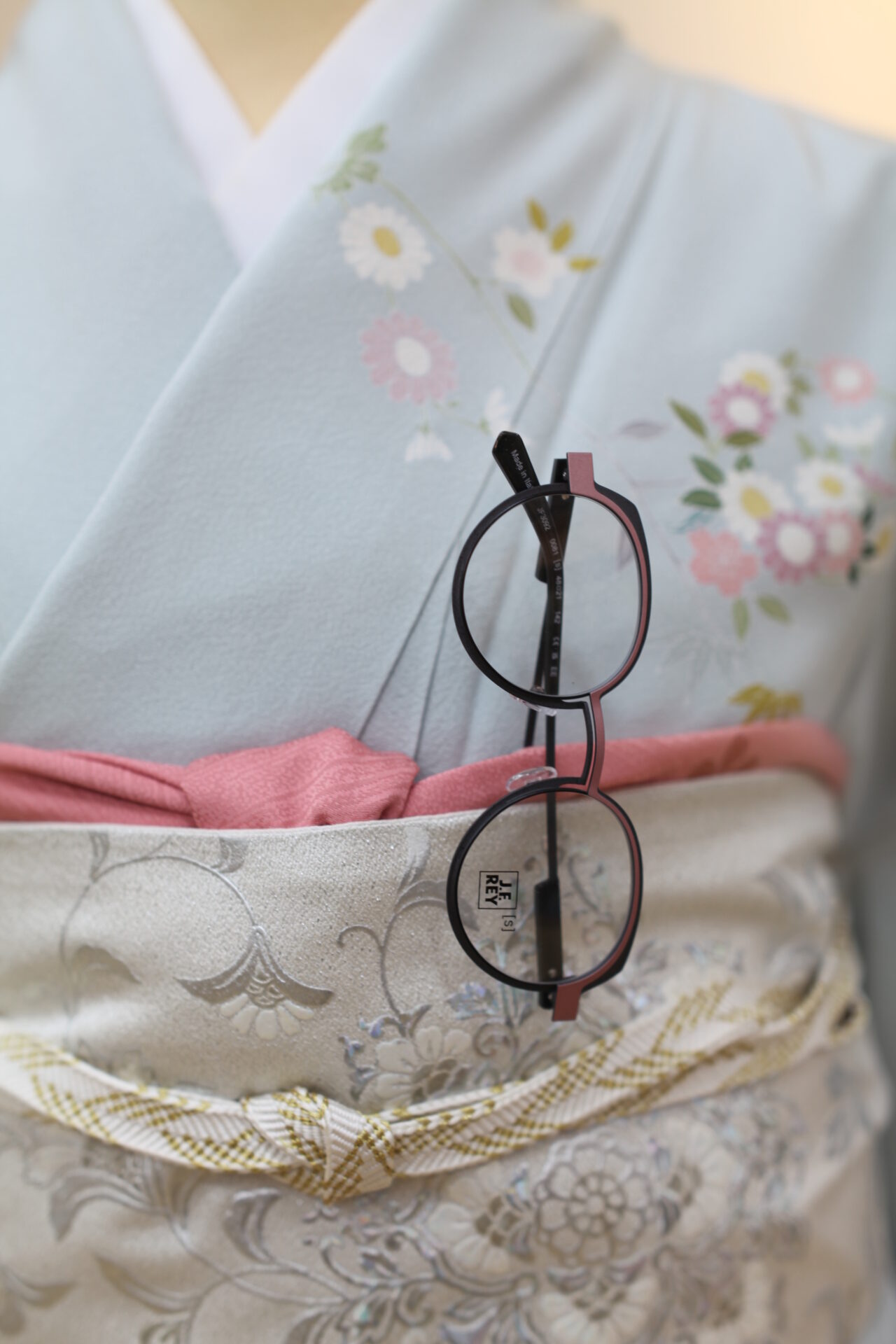 一昔前までは着物にめがねはタブーなんて言われていたり。着物のときはコンタクトで…という方も多いと思うんですが、実は着物に”眼鏡”は、とてもよく合うんです!