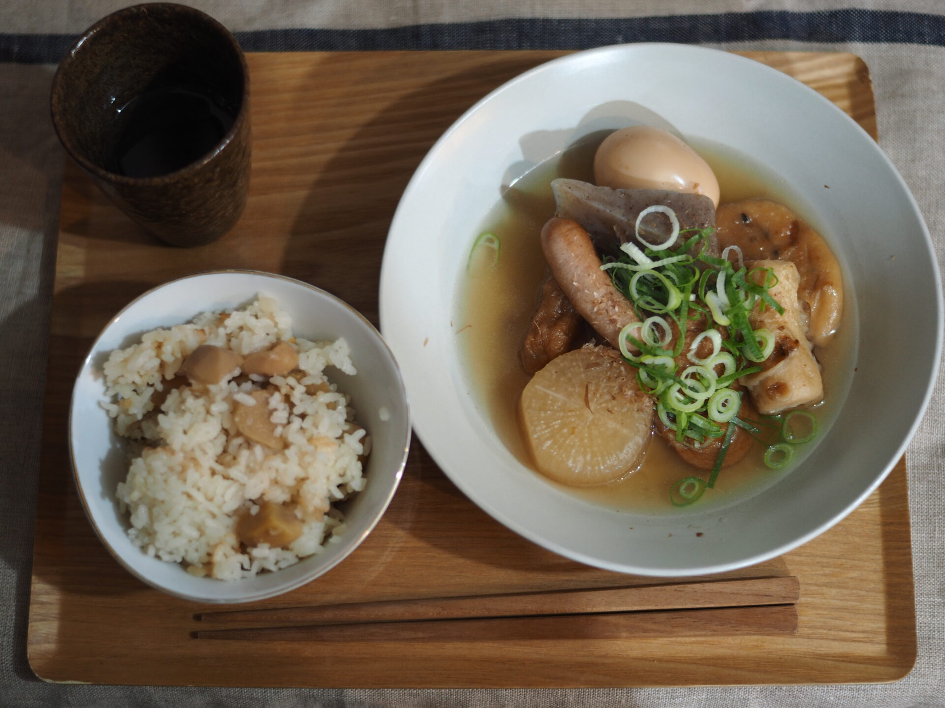 おでん、栗ご飯、酒。